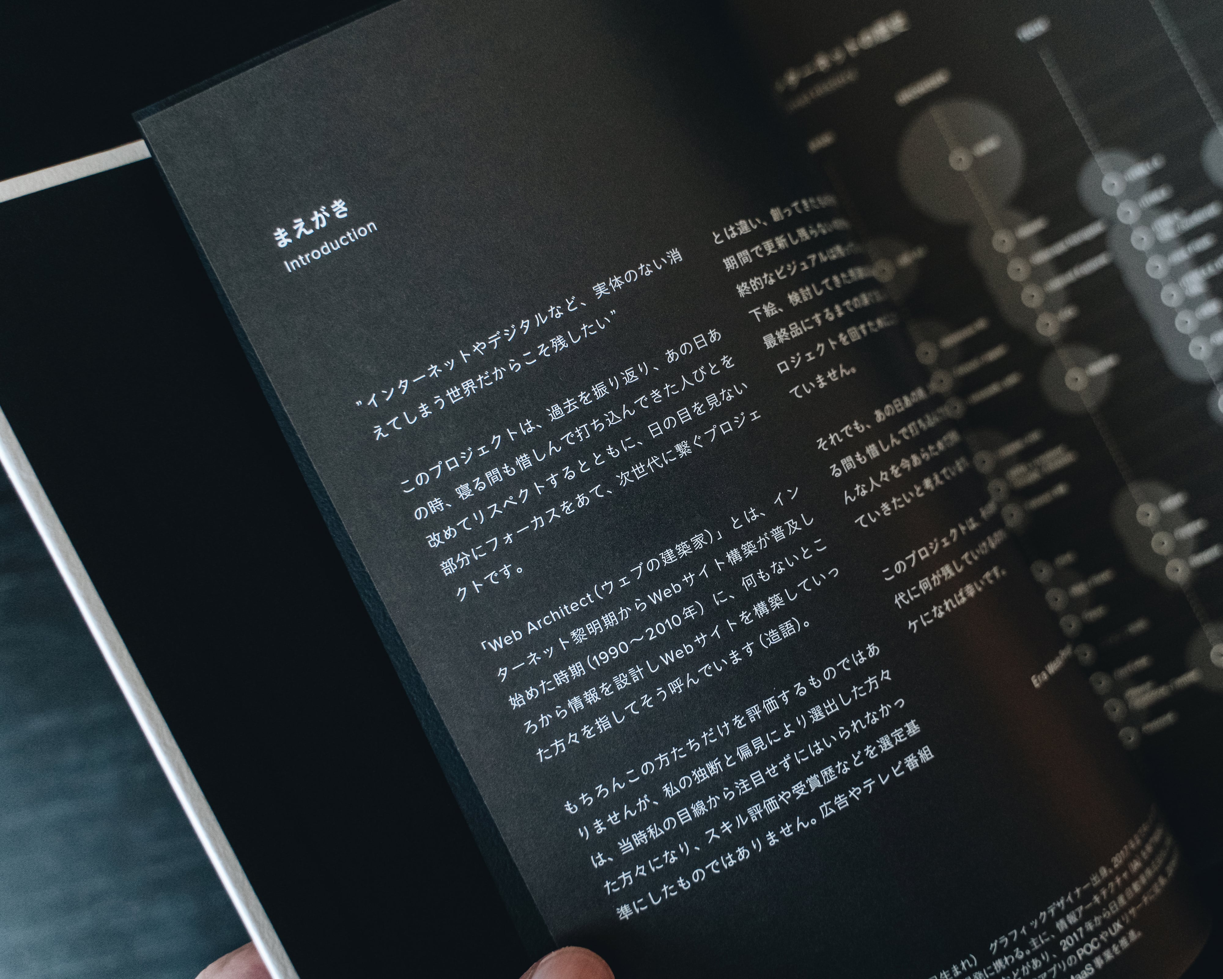 Webサイトをつくってきた時代をアーカイブする Era Web Architects プロジェクト(発起人: 坂本貴史)で書籍化したものです。このプロジェクトは、1990年から2010年の20年間を振り返り、その時期にインターネットに関わりWebサイト構築などに携わった方々を対象に、ポートレート撮影をし、写真展を開催(2021年3月)、Youtube でオンラインインタビューを実施しています。